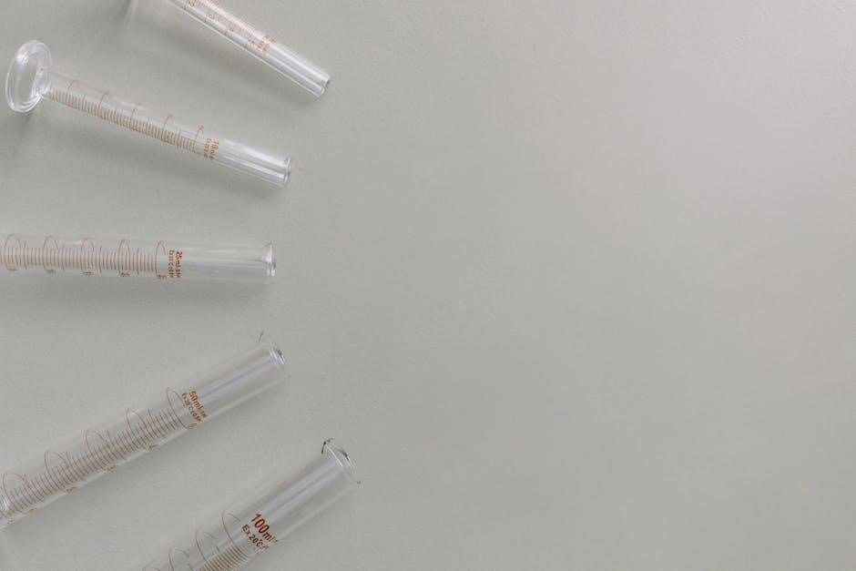 Understanding the principles of each technique‚ as outlined in analytical chemistry resources and PDF manuals‚ is crucial․ Proper calibration and handling of glassware are essential to minimize systematic errors․ Online resources and laboratory protocols provide detailed instructions on performing these measurements accurately‚ ensuring reliable analytical results․ Careful technique selection is vital for optimal outcomes․